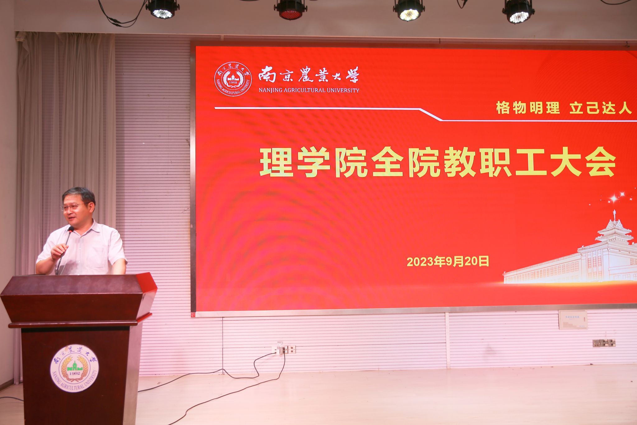 9月20日下午,买球体育官方网站在教四楼一楼报告厅召开全体教职工大会传达中共买球体育官方网站第十二届委员会第十四次全体(扩大)会议精神,部署新学期工作,欢送2023年荣休教职工。学院党政领导班子成员以及全体教职工参加会议。