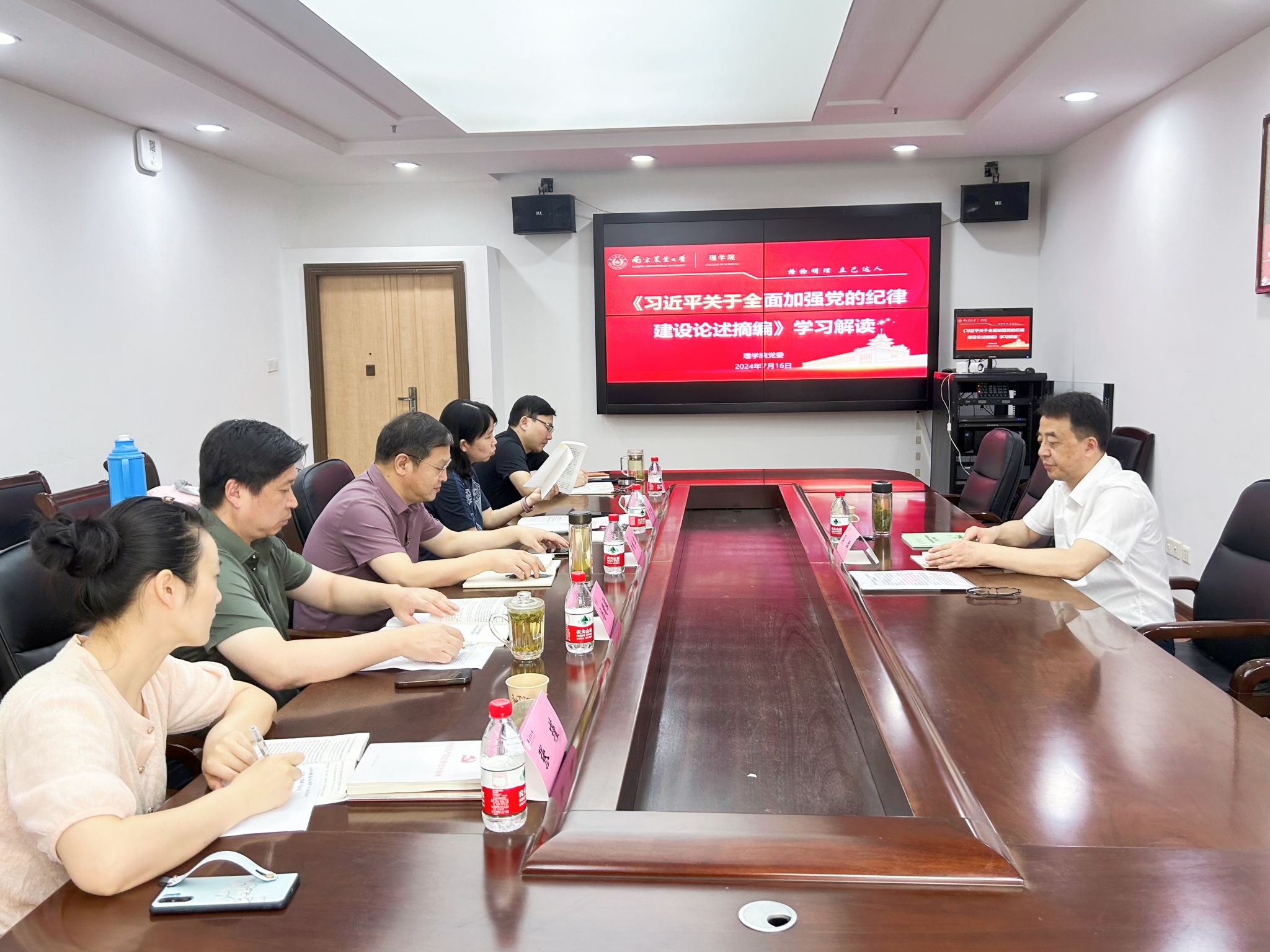 7月16日上午,买球体育官方网站党委理论学习中心组召开党纪教育学习研讨会,集中开展对《习近平总书记关于加强党的纪律建设论述摘编》(以下简称《摘编》)的学习交流,校党委常委吴群列席并进行指导,院领导班子全体成员参会。会议由学院党委书记吴彦宁主持。