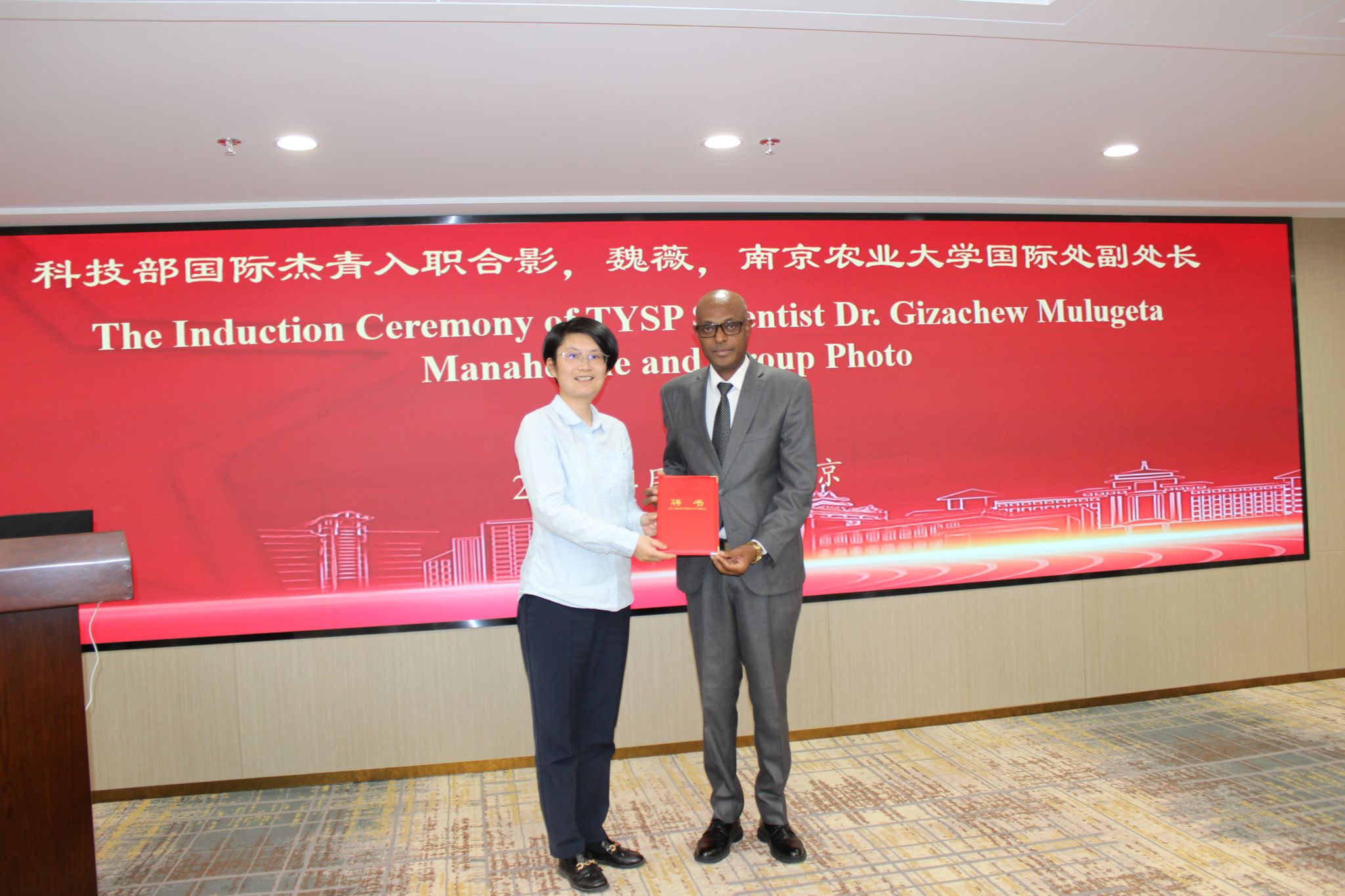 买球体育官方网站国际处副处长魏薇为Gizachew博士颁发“国际杰青计划青年科学家”聘书。