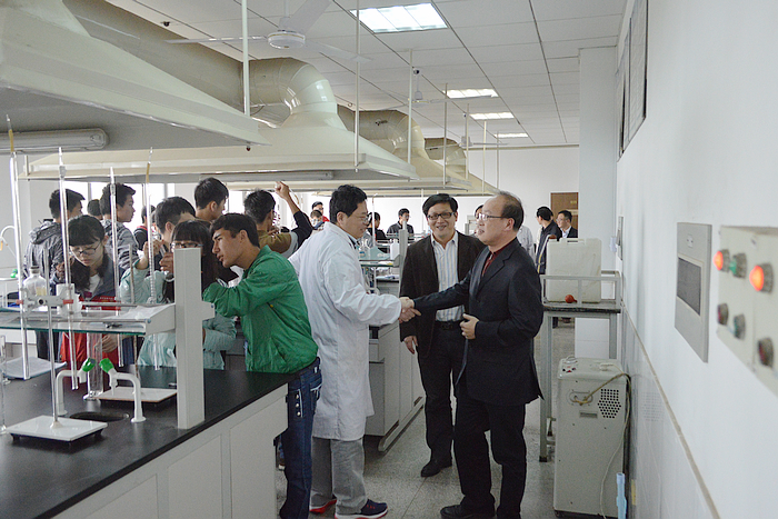 周校长一行首先走访了理学楼的化学教学实验中心、物理教学实验中心及核磁共振仪器室。周光宏校长仔细观看了正在进行的无机化学、仪器分析等实验课,并亲切与教师、学生询问交流,对实验教学过程中学生的积极参与性、良好互动性表示赞赏。