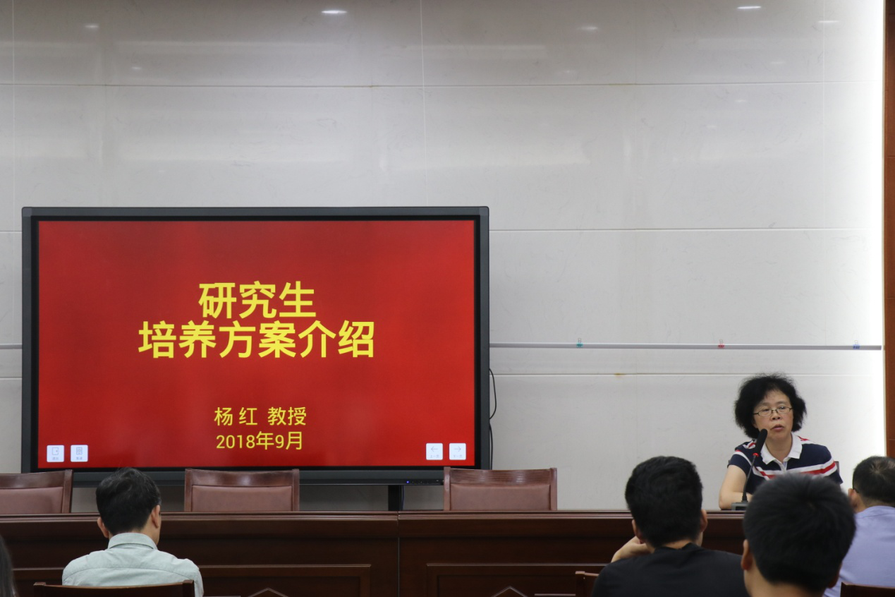 随后,杨红教授就研究生培养方案向我们作了基本介绍。她首先介绍了买球体育官方网站研究生学科点专业构成,共有化学、化学工程、天然产物化学、生物物理、数学等专业组成。然后,杨老师重点围绕培养方案向我们介绍了研究生生活。从培养目标、学制,讲到研究生学术报告讲座,再讲到学硕的开题报告要求、中期考核以及专硕的专业实践,最后提到了学位论文的撰写、修改、定稿以及答辩的相关事项。
