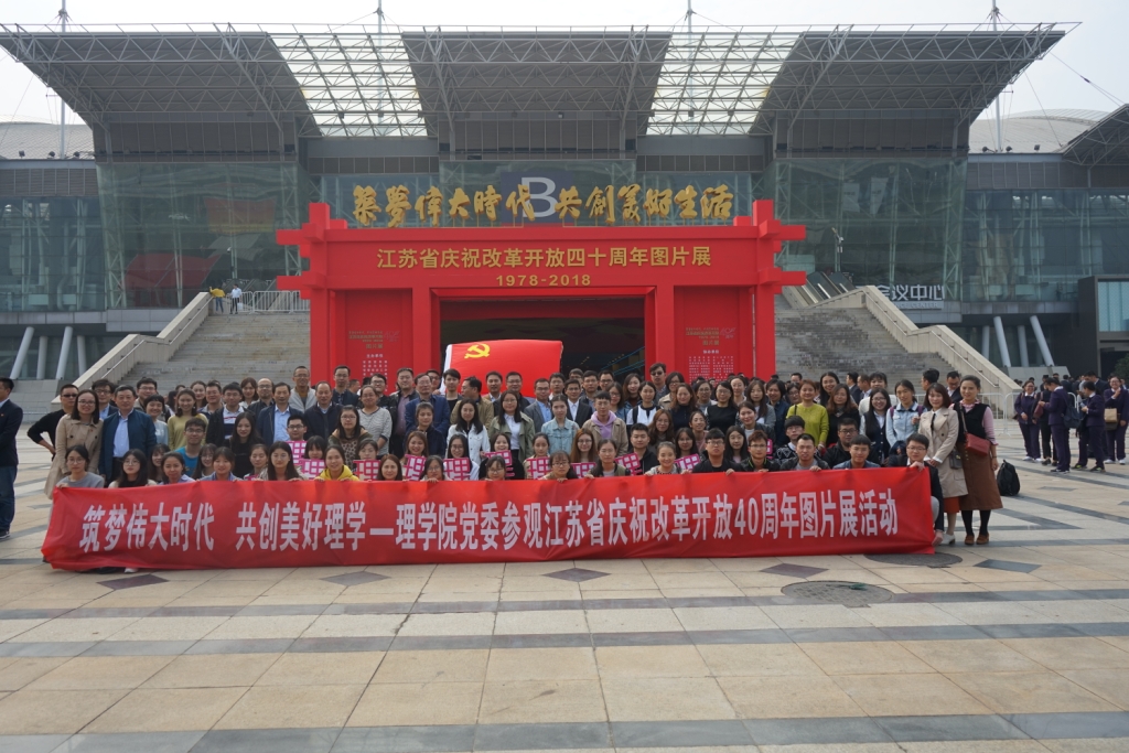 为全面了解江苏改革开放的生动实践和巨大成就,促进广大党员深入学习习近平新时代中国特色社会主义思想和党的十九大精神,进一步激发新时代新担当新作为,以实际行动庆祝改革开放40周年,买球体育官方网站党委开展“筑梦伟大时代,共创美好理学”主题实践教育活动,2018年10月24日下午一点,在买球体育官方网站党委程正芳书记的带领下全体师生党员参观江苏省庆祝改革开放40周年图片展。