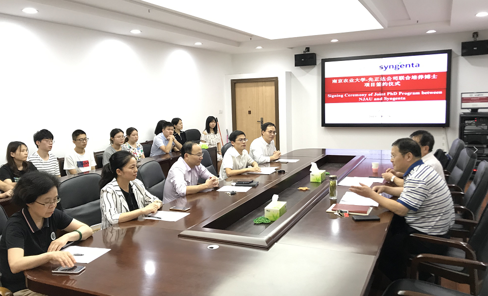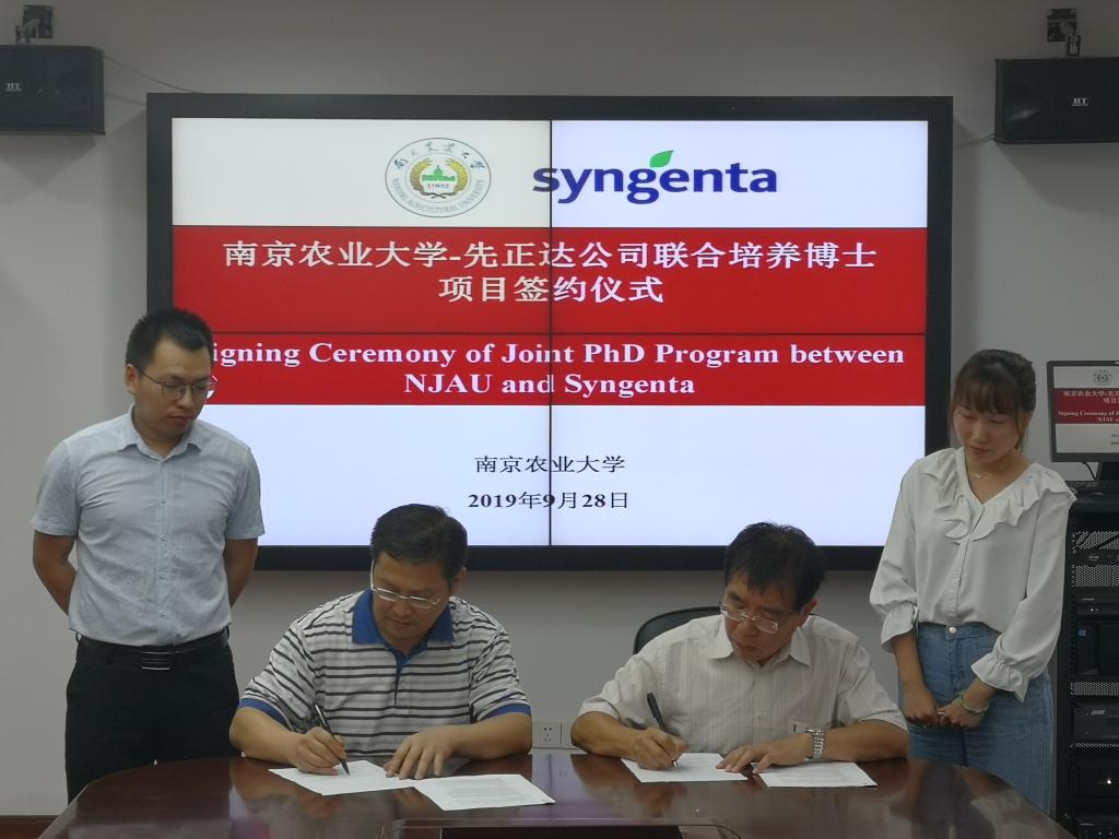 2019年9月28日下午,买球体育官方网站与先正达公司联合培养博士项目协议签字仪式在买球体育官方网站报告厅举行,买球体育官方网站院长章维华教授和先正达公司研发总监兼首席科学家顾玉诚博士代表双方签字。买球体育官方网站吴磊副院长、朱映光副院长、杨红教授、吴华教授、张明智副教授、张曙光、夏青等青年教师以及部分研究生参加了此次活动。