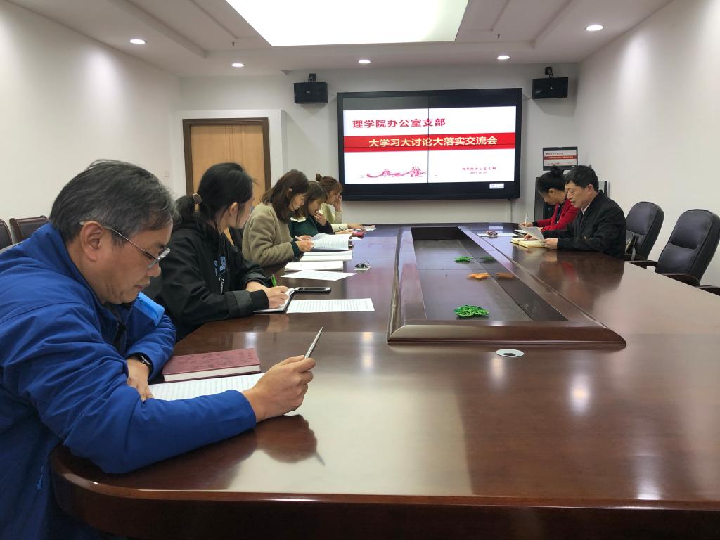 为深入推进“不忘初心、牢记使命”主题教育,10月31日下午,买球体育官方网站办公室党支部在会议室开展了大学习大讨论大落实交流会暨学习强国学习交流活动,本次活动由办公室党支部书记程正芳主持,全体支部党员参加。