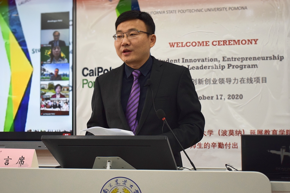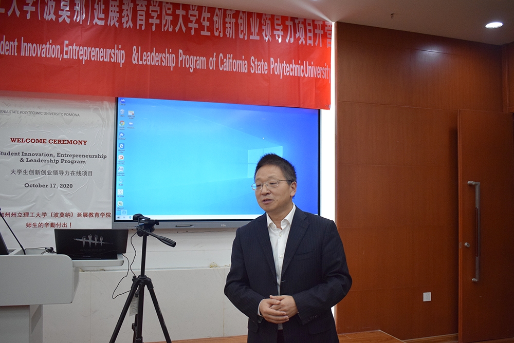 10月17日上午8:30,买球体育官方网站优秀大学生参加美国加州州立理工大学(波莫纳)延展教育学院大学生创新创业领导力项目开营仪式成功举办。买球体育官方网站校友总会办公室(教育基金会办公室)主任张红生、买球体育官方网站党委书记程正芳、延展教育学院代理院长、商学院院长、国际事务最高执行官Erik Rolland、国际合作与交流处副处长董红梅、买球体育官方网站副院长吴磊、延展教育学院全球教育交流学院主任薛亚萍、国际合作与交流处满萍萍老师出席了开营仪式,买球体育官方网站41位优秀大学生参加了本次开营仪式。开营仪式由延展教育学院Rick Wang主持。