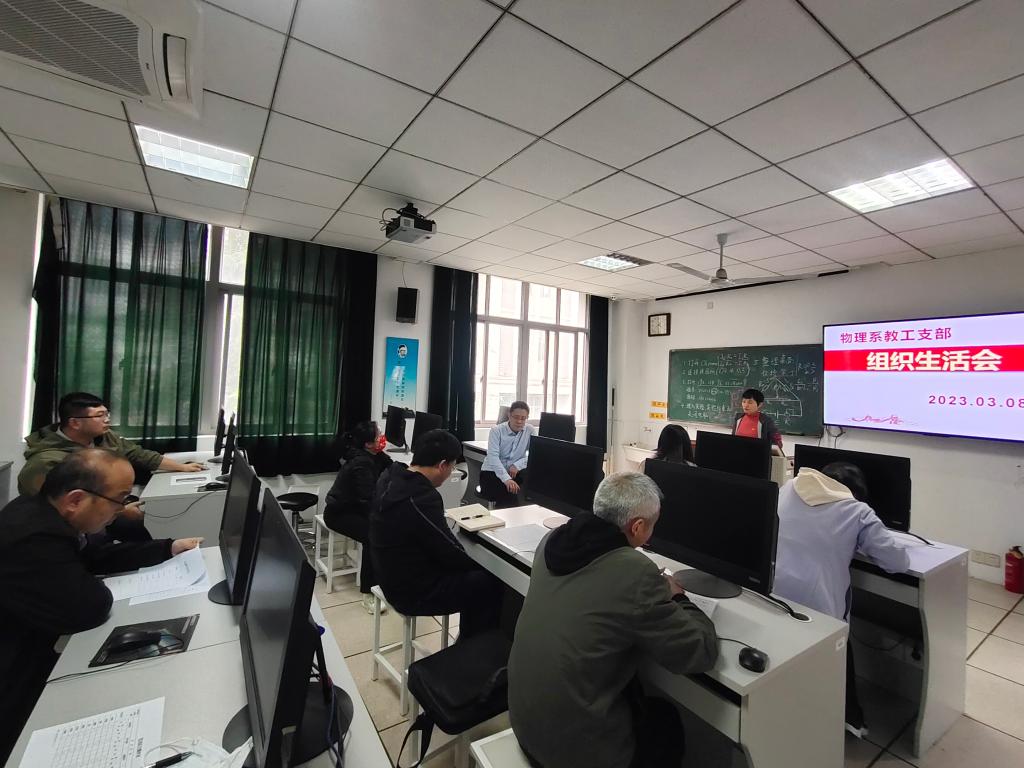 3月8日中午,物理系教工党支部2022年度组织生活会在理学楼235召开,买球体育官方网站党委书记丁广龙作为联系该支部的党员领导干部出席会议,物理系教工党支部书记王筱霏、系主任张帆以及支部全体教师党员参加会议并认真开展了批评与自我批评。