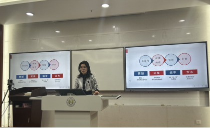 会前,党支部邀请党委宣传部许天颖老师作了题为《融媒体时代—如何点亮高校新闻宣传》的专题报告。她指出,新闻的传播要注重优质内容一次采集、多平台传播的立体化宣传。运用“中央厨房运作模式”,注重新闻题材挖掘,将策划前移,深入调研,变被动为主动,着力将学院优势特色与教育热点、社会热点的有机结合,发掘典型人物、典型事件,将新闻内容从常规“线性”新闻发布转变为“矩阵式”全覆盖发布。关于“新闻怎样写”,许老师从消息的写作结构、写作方法、主体、背景、结尾的写法方面进行了系统培训。她认为一篇优秀新闻稿应该拥有灵活鲜明的标题、引人入胜的导语、深化题旨的主题、有的放矢的背景和恰到好处的结尾,做到“豹头、猪肚、凤尾”。