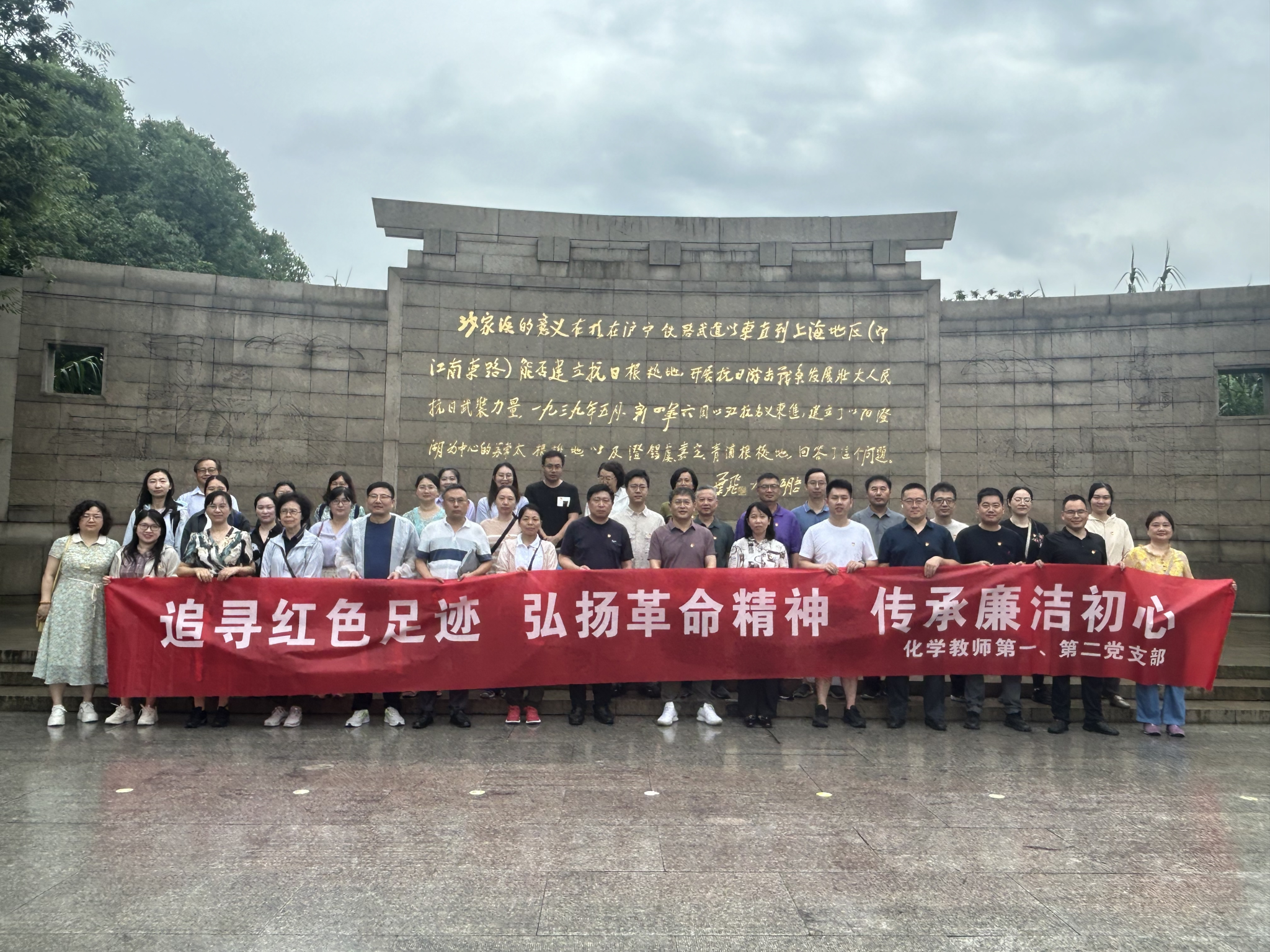 活动第二天,教师们前往沙家浜,参观沙家浜革命历史纪念馆。在纪念馆宣誓墙前,吴彦宁书记带领全体党员重温入党誓词。随后,在纪念馆讲解员的引导下,大家认真聆听了中国共产党领导苏南人民顽强抗日的历史,重温当年沙家浜抗日军民鱼水情深和共同抗敌的感人事迹。