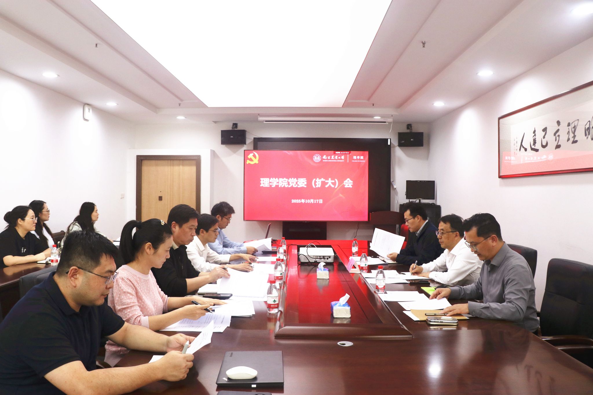 10月17日下午,买球体育官方网站党委(扩大)会议暨党委中心组理论学习会和党政联席会在教四楼B211召开。校党委常委吴群到会指导,院党委书记李日葵主持会议,学院全体党委委员和领导班子成员参加会议,学院办公室全体成员列席会议。