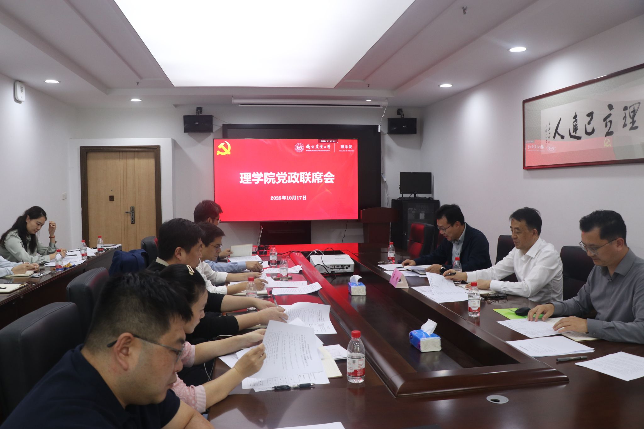 学院党政联席会上,汪鹏代表班子汇报了2025年度目标管理考核任务指标的推进情况,班子成员结合分管工作及认领指标,重点就未完成指标接下来的推进思路及方法举措展开研讨并达成工作共识。汪鹏指出,班子成员要进一步明确学院的发展方向,推进学科交叉,谋划错位发展,聚焦新型肥料、环境识别检测、农业环境资源管理优化等方向,对接农业发展需求;争取资源与空间建设,改善软硬件条件,整合搭建学院公共科研平台资源,保障青年教师科研需求。