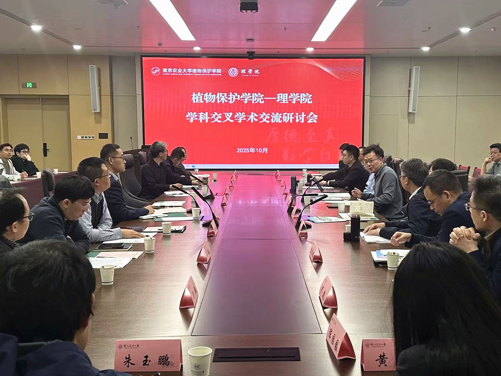 为促进学科交叉融合,激发科研创新活力,10月29日,买球体育官方网站与植物保护学院联合举办的学科交叉学术交流研讨会”在滨江校区会议中心1号会议室成功举办。植物保护学院党委书记张正光、院长董莎萌、买球体育官方网站院长汪鹏、植物保护学院副院长张进、买球体育官方网站副院长朱映光、吴顺凡,两学院各科研团队骨干教师代表、青年教师及研究生代表齐聚一堂,共话学科交叉合作前景。