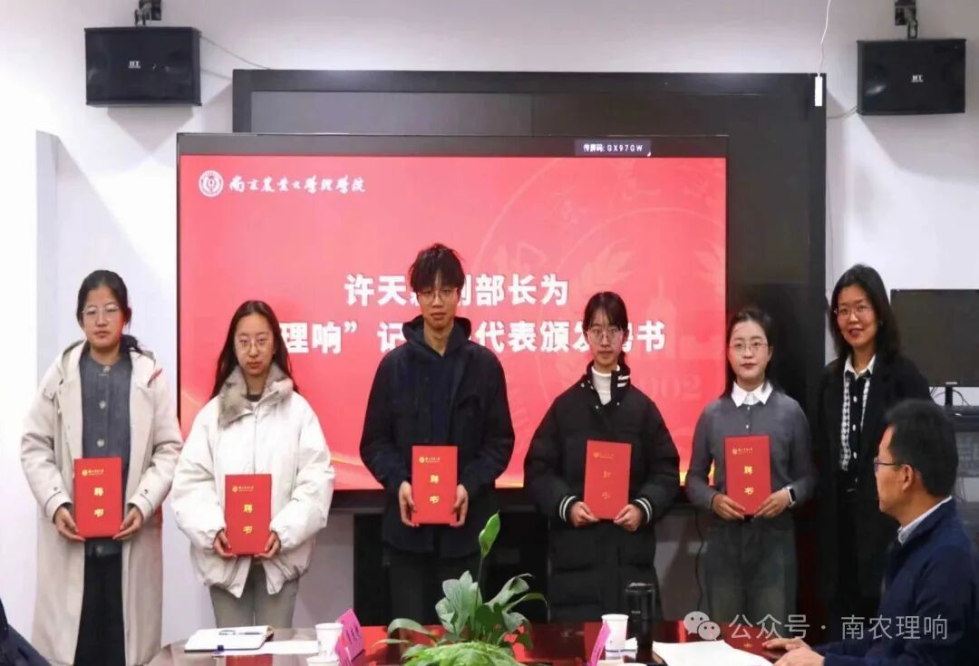 校党委宣传部副部长许天颖为首届“理响”记者团成员颁发聘书,勉励同学们积极投身学院新闻宣传实践,锻炼能力、服务集体。