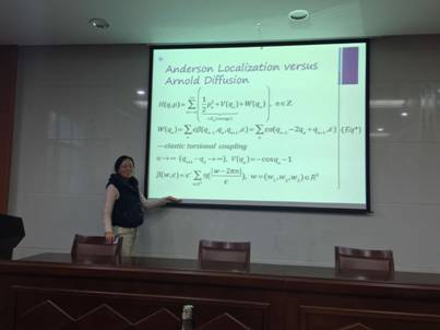任秀芳副教授向买球体育官方网站教师和学生们介绍了拟周期斜积系统的反转结构的保持性问题和耦合哈密顿格点系统的呼吸子的构造问题。某些偏微分方程的离散化形式具有重要的探究价值,她从一类特殊的耦合系统出发,将其与平面定性与稳定性理论、可逆算子的保结构理论结合起来,为学生们展示了格点系统的局域化反转拟周期解的一些构造途径。加深了学生对于非线性分析抽象知识的理解,并激发了教师和学生们的热烈讨论。