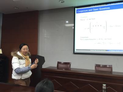 陈智老师主要介绍了对Un(Fq)上的超特征标空间和非交换对称函数空间的比较研究,以及这两类空间是Hopf代数同构的,并且给出了Un(Fq)上的超线性特征标到GLn(Fq)的诱导特征标的一个简化递推公式。