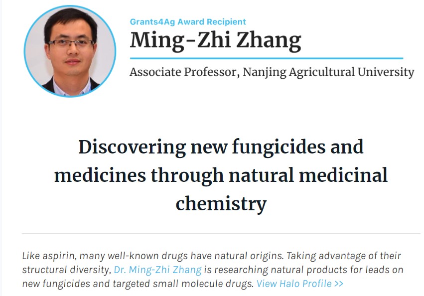 张明智副教授的获奖信息:https://www.halo.science/blog/discovering-new-fungicides-and-medicines-through-natural-medicinal-chemistry/