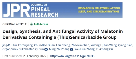 近日,买球体育官方网站章维华教授和张明智副教授团队在生理学国际权威期刊《Journal of Pineal Research》在线发表了题为“Design, Synthesis, and Antifungal Activity of Melatonin Derivatives Containing a (Thio)Semicarbazide Group”的研究论文,报道了褪黑素衍生物的设计合成及其对常见农业病原真菌的抗真菌活性研究,完成了基于人工智能技术的类农药性预测,并测定了潜在靶标SDH的活性。