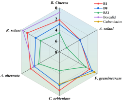 图1.高活性化合物对六种植物病原真菌的抑制活性