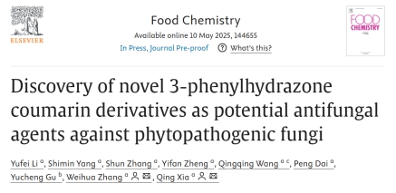 近日,买球体育官方网站章维华教授和夏青副教授团队在农林科学国际权威期刊《Food Chemistry》在线发表了题目为“Discovery ofNovel 3-Phenylhydrazone Coumarin Derivatives as Potential Antifungal Agents Against Phytopathogenic Fungi”的研究论文。