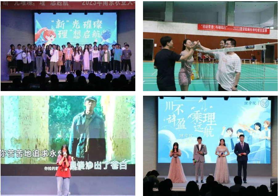 以体育人,开展趣味运动会、四院运动会、师生羽毛球交流赛等,帮助学生强健体魄;以德育人,举办“珍惜粮食、拒绝浪费”主题文化节、“意语青诗”推普周活动,陶冶高尚的道德情操;以智育人,举办“新”光璀璨 “理”想起航迎新晚会、“恰同学少年,吾辈正当时”新生演讲比赛、“理颂星光、乐动四季”十佳歌手大赛等活动。多渠道、多领域培养新时代所需人才,为同学们提供展示自我的舞台,书写学生的青春答卷。