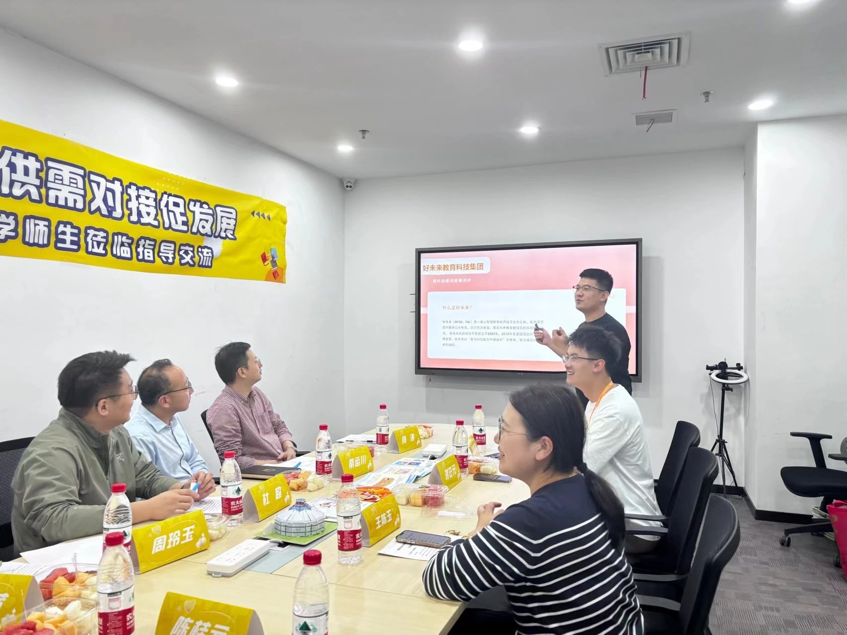学而思华东大区校园招聘经理蒋正元向买球体育官方网站桑书记一行介绍了公司起源,发展现状和企业文化。桑书记也明确表示了买球体育官方网站在高质量建设中对于院企合作的高度重视。