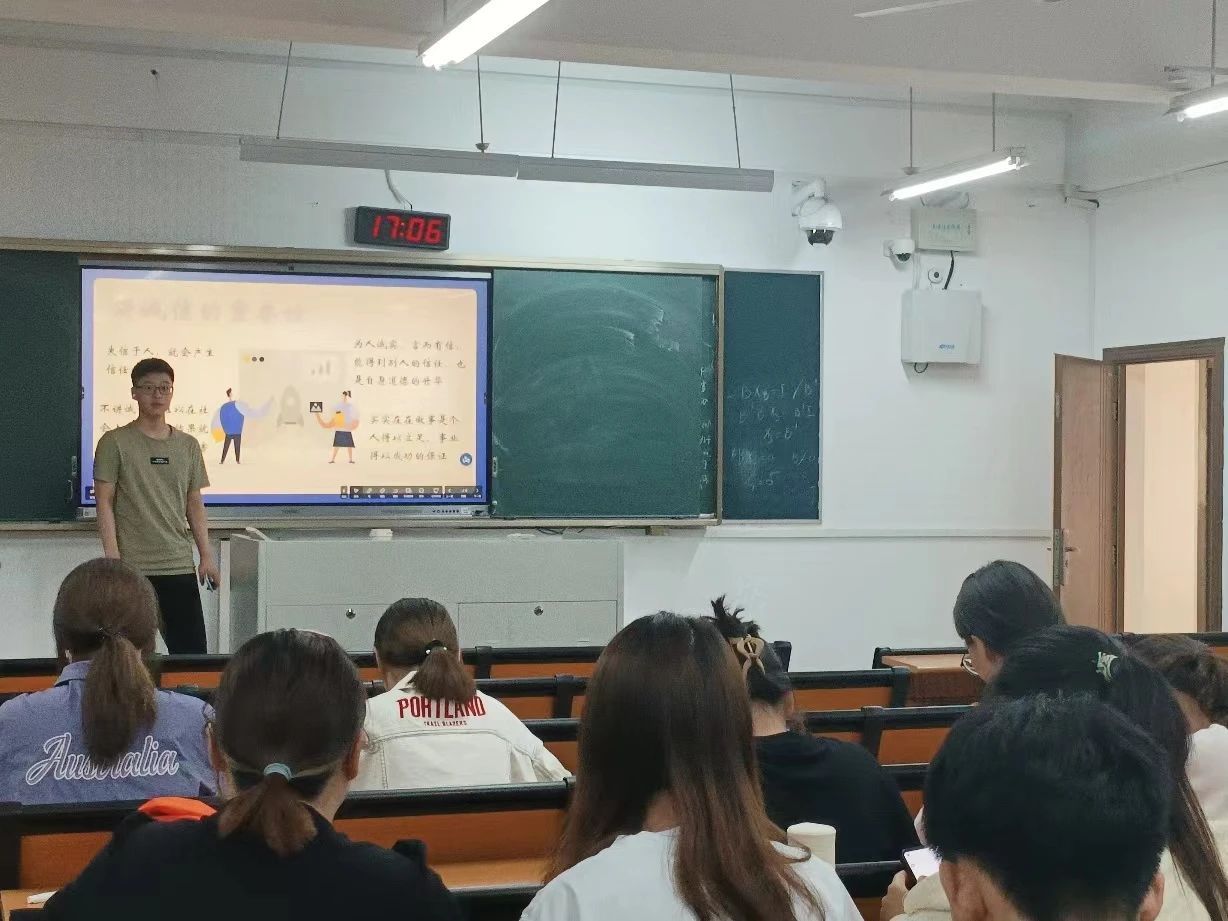 通过观看视频,故事分享及安全委员宣讲的形式向同学们介绍诚信的重要性。让同学们了解到诚信的重要性,提前了解同学们的相关诚信和失信实例,用实际例子和视频讲解的方式向同学们介绍诚信的内涵。诚信应践行在我们的日常生活中。