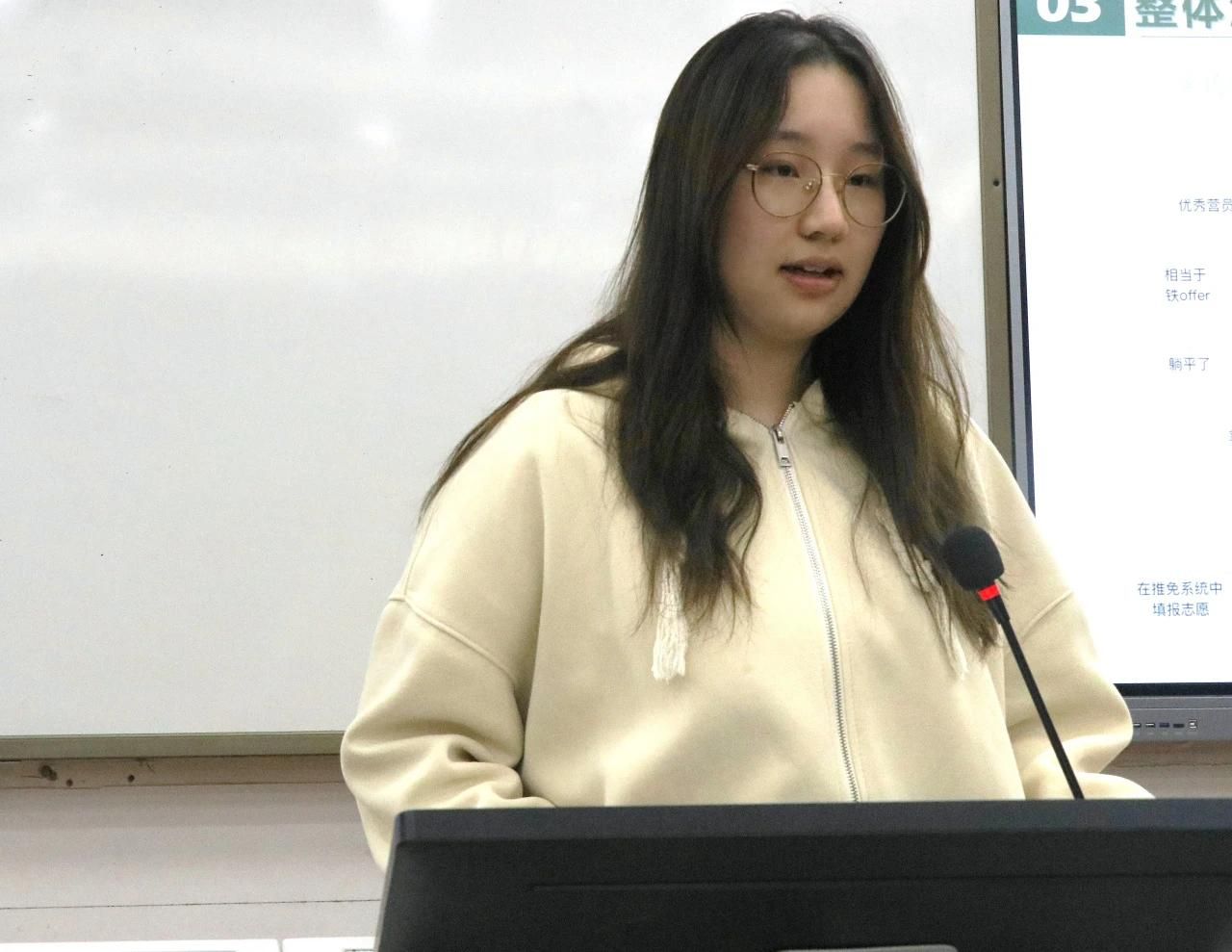 最后,她建议同学们收集各类信息,充分了解本校保研政策,可以向保研的学长学姐咨询获取各类信息。