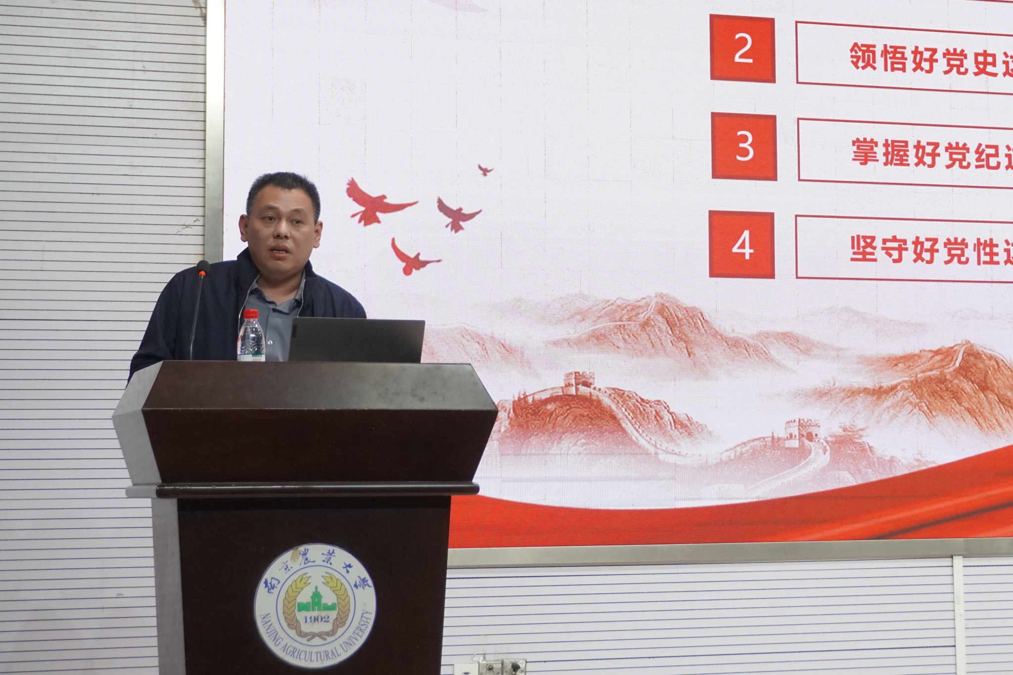 最后,由周燕虎给各位入党启蒙学员,入党积极分子以及预备党员进行入党教育,他介绍到党章是党的根本大法,是立党、治党、管党的总章程;党纪是党的各级组织和全体党员必须遵守的行为规则。他希望同学们都应了解党规,遵守党纪,牢记党史,心怀党章。