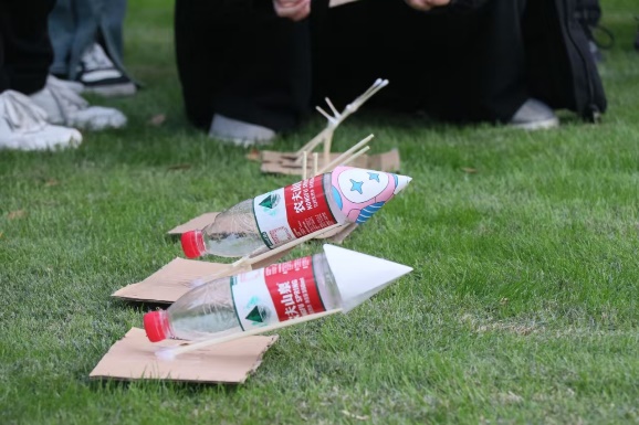 微党课宣讲后,师生齐聚主楼草坪,开展实践活动。在老师们的指导下,学生党员分小组顺利组装好火箭,蓄势待发。随着一声令下,同学们点燃激情,“嗖”的一声,火箭如离弦的利箭一飞冲天,冲出了气势,冲出了青春的朝气。虽然有的火箭中途熄火,但同学们敢尝试,敢试错,坚持不懈、寻找并解决问题的精神却在这个冬日更显可贵。一次次点火,一次次坚持,这未尝不是青春最好的注脚。同学们博观约取,注重积累,行其路,笃其行,而后致其远。“载人航天精神”在此刻生动具象化,信仰之火生生不息。“思想的火炬,引领前进的步伐”同学们拒绝坐而论道,慨然起而行之。