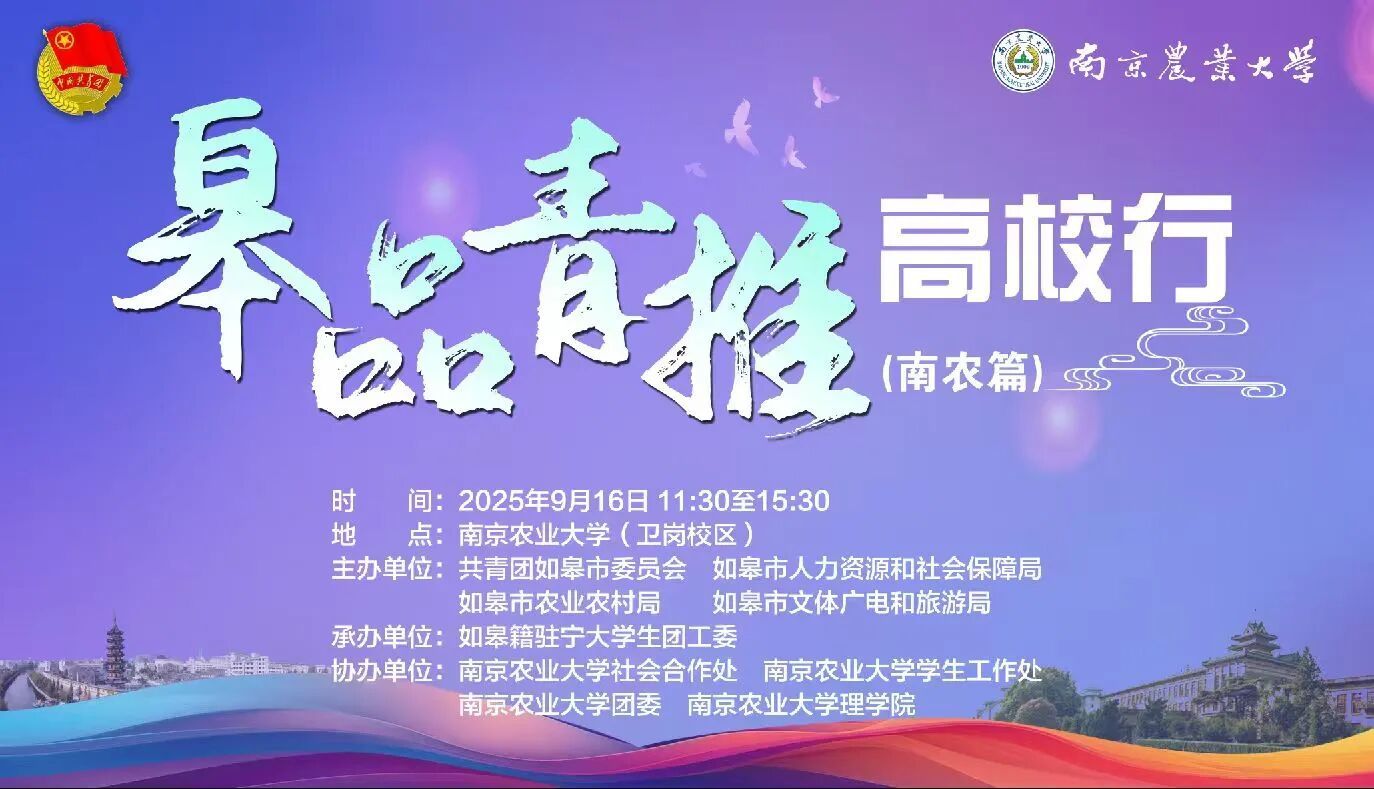 为深化校地合作、促进青年人才与地方文化交流,9月16日11:30至15:30,由买球体育官网协办的“皋品青推高校行”活动在卫岗校区举行,买球体育官网党委书记李日葵、副书记冯绪猛、如皋团市委书记吴杰、农业农村局副局长周杰、高迎旭、文体广电和旅游局副局长胡建峰、团市委副书记冒文宇、农业农村局人事科副科长唐晖及农业企业代表出席本次活动。