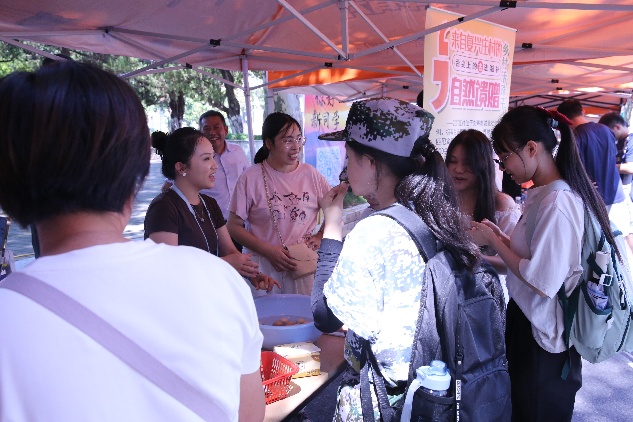 无论是各种美味的食物或是精美的香囊还是特色花木盆景……通过扫码关注形式即可领取。同学们品尝特色美食,观赏绿色盆景、蝶尾金鱼,不仅使同学们了解了如皋农产品品牌故事,也让他们对科技引领下的农业产业多元化、品牌化发展产生了浓厚的兴趣,激发了同学们对三农事业的热情,引导了同学们为实现农业强、农村美、农民富的目标贡献青春力量。