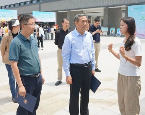 最后,熊富强介绍了本届大学生心理健康教育月活动安排,并宣布开幕式结束。开幕式后,刘营军等领导、老师参观了AI心理海报作品展,并参与到各学院的特色心理健康教育活动中,与同学们热情互动。