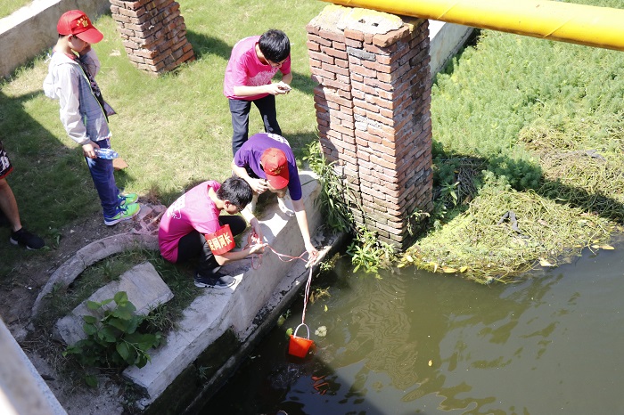 7月18日,团队队员带领着孩子们沿着秦淮河河堤取水做实验。成员们利用自己的专业知识带领孩子们依次进行明矾净水、ph试纸检测、肥皂水检测水的硬度。孩子们在专业指导下,亲自动手参与实验。这次水质检测活动,让孩子们意识到水污染是可以治理的,但是治污难度和成本非常大,期望青少年们可以从小养成保护水资源的良好生活习惯。