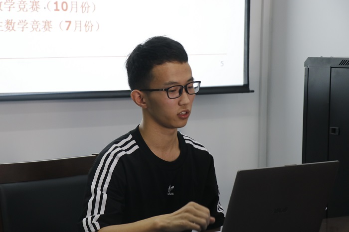最开始工学院转入信息与计算科学16级的李沛锴同学通过用名人名言和数学学习相结合的方法,向同学们讲解了一种属于他自己的学习方法。另外他也就着生活中的PU活动,向大家解释了如何巧妙的平衡PU活动与学习之间的关系。最后李沛锴同学就自己的生活经验讲述了生活的作息习惯,在场的同学们受益匪浅。