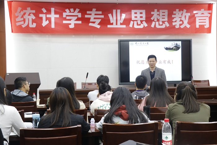 首先,由李爱萍老师对本次讲座进行了大致的介绍,宣布讲座开始。紧接着,肖老师向同学们简要介绍统计学专业,详细解读培养方案,此外,肖老师还介绍了一些学好专业知识的方法,并且对统计学专业就业前景做了分析,在场的同学们都受益匪浅。之后,李强老师着重介绍了统计学专业学生的发展前景,还分享了自己对于直接就业与读研深造的看法,建议同学们继续深造。接着,刘照云老师列举了一些往年其他专业学生转入统计学专业的例子,肯定了同学们选择统计专业进行学习的决定,表达了对同学们未来学习生活的殷切期盼。
