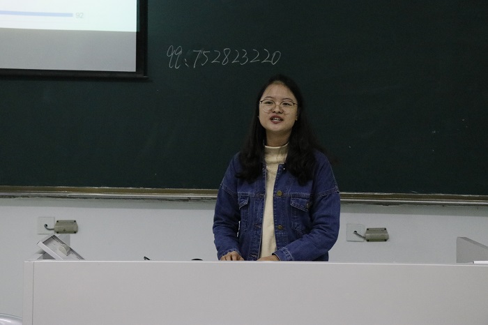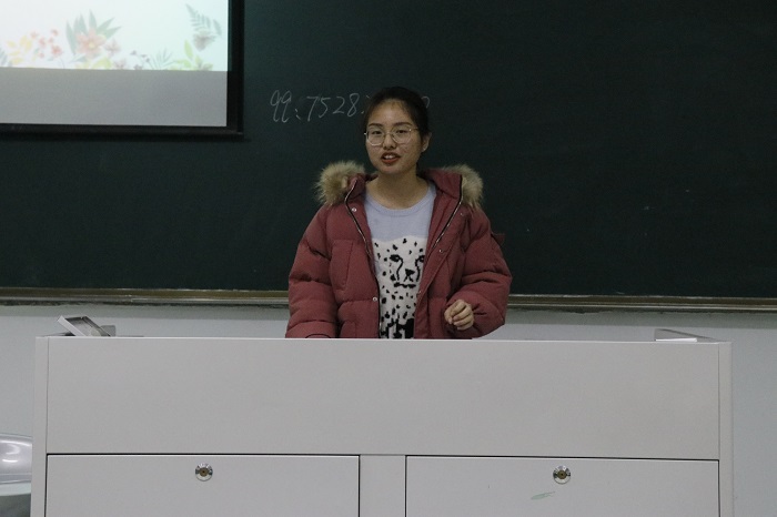 接着,本次国家励志奖学金的五位获奖者依次上台分享经验。他们分别是应化151班郭蕾、信科162班朱闪闪、应化161班卢伟华、统计161班樊杜泽和信科172班朱泽林。他们对自己的大学学习经验,个人经历及心得体会向同学们做了分享。