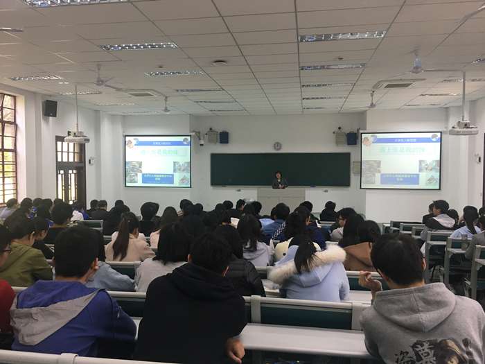 2017年3月29日14:00,买球体育官方网站特邀校大学生心理健康教育中心主任徐梅老师,在主楼133教室面向学院全体大一学生进行了主题为《遇见你是我的缘》大学生人际交往专题培训。学院党委副书记刘照云老师,辅导员黄芳老师以及全体2016级学生参加了此次培训。