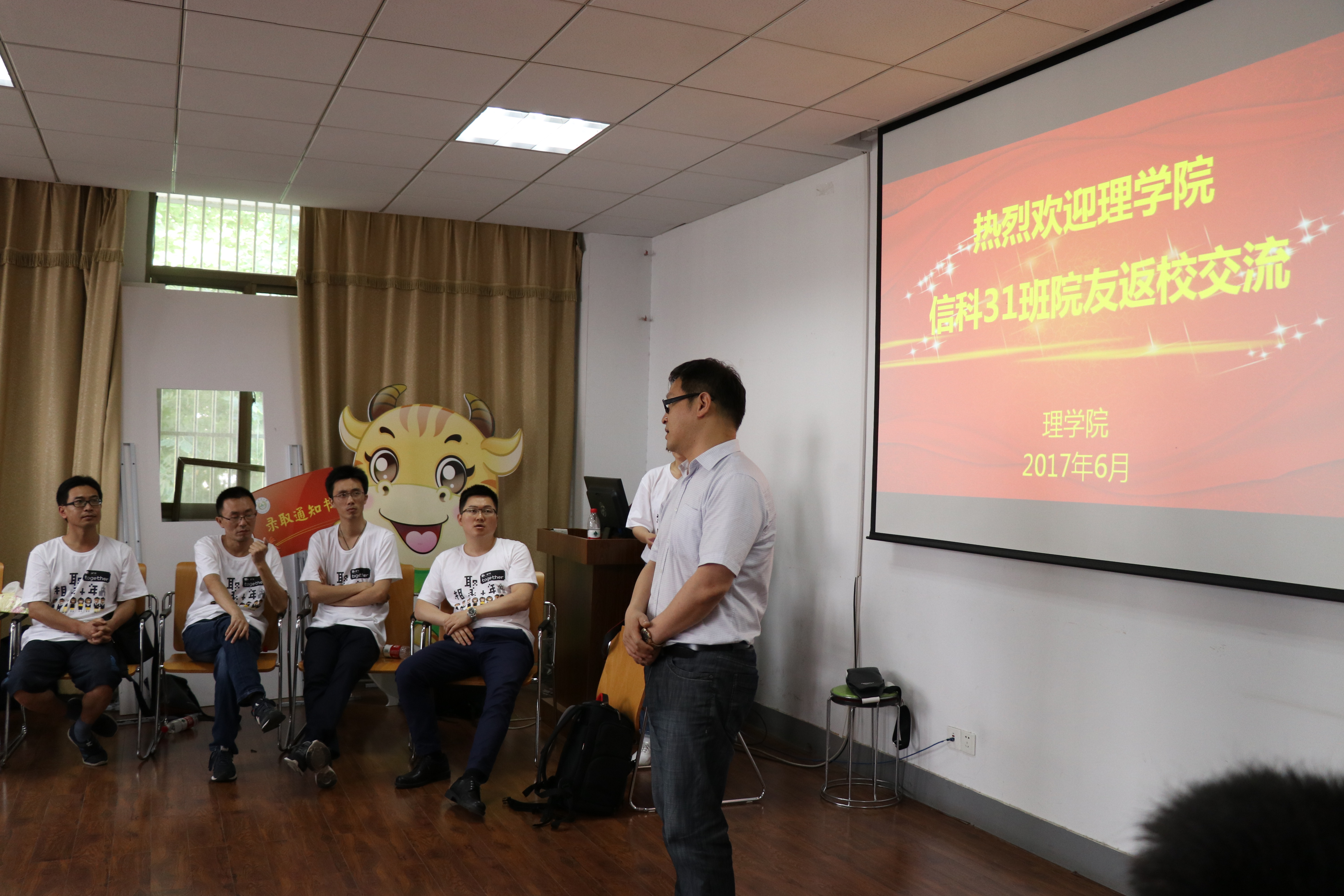 随着轻松的音乐,交流会正式开始。信科31班学生王佩佩主持,她代表班级同学表达了此次聚会的目的在于增进彼此感情,共同回忆青春时光。