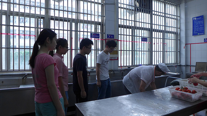 自2017年7月6日起,在应化151班董亚雯的带领下,一支12人的暑期社会实践团队以食堂体验观察员的身份,走进了学生第三食堂的后厨。通过三天的亲身体验,让学生真实地感受到每天用餐环境以及工作人员的不易。