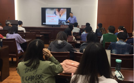 接下来,张董通过实盘交易展示与一系列公司的图片与介绍,向学生展示了公司的工作内容。之后,张董向同学们展示互联网带来的交易的实时性,以趣味的方式说明了承担资源配置功能的证券市场的效率相较以往大大提高。并由此展开,分析了金融领域各行业的形势。分析层层深入,全面而精到,令同学们受益匪浅。