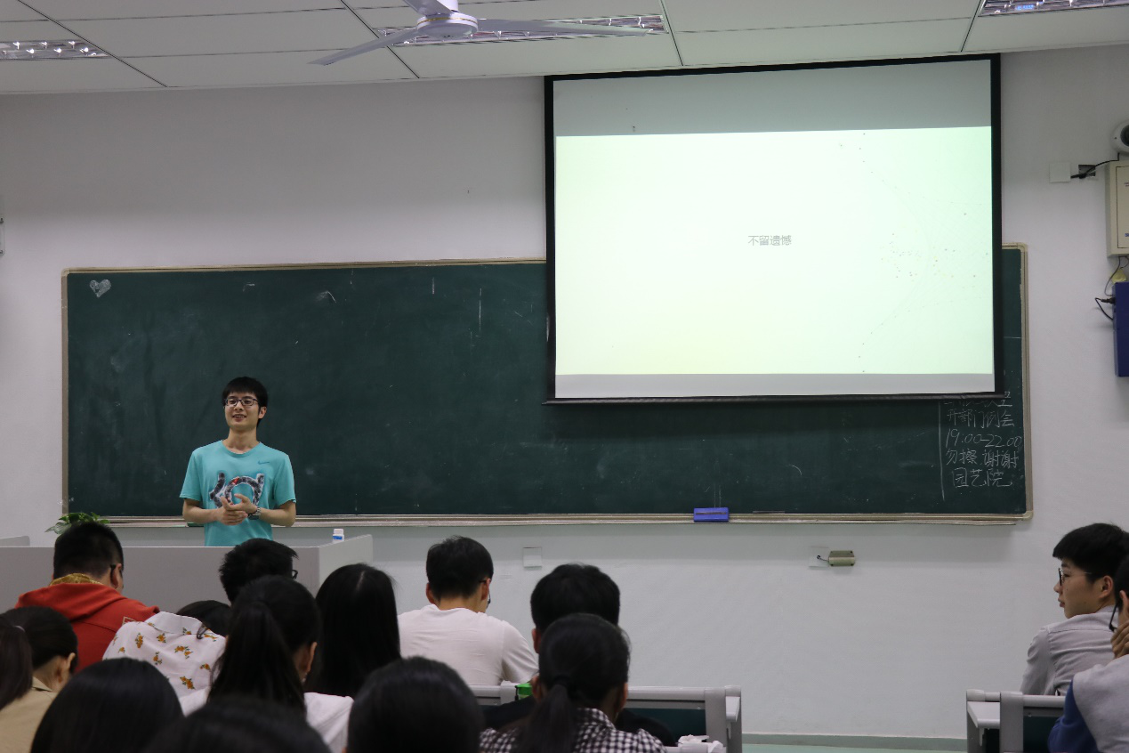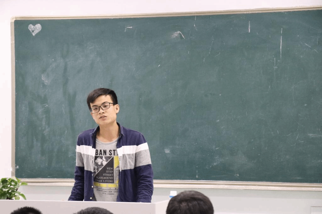 第一位分享的是信科142班的史政源。他从如何有计划地学习谈起,告诫大一学生要制定大学四年的学习计划,想清楚自己四年后要做什么,学习要学什么,要怎么学。不给自己留遗憾。同时他也简单介绍了信科和统计专业未来读研、工作可以考虑的方向。