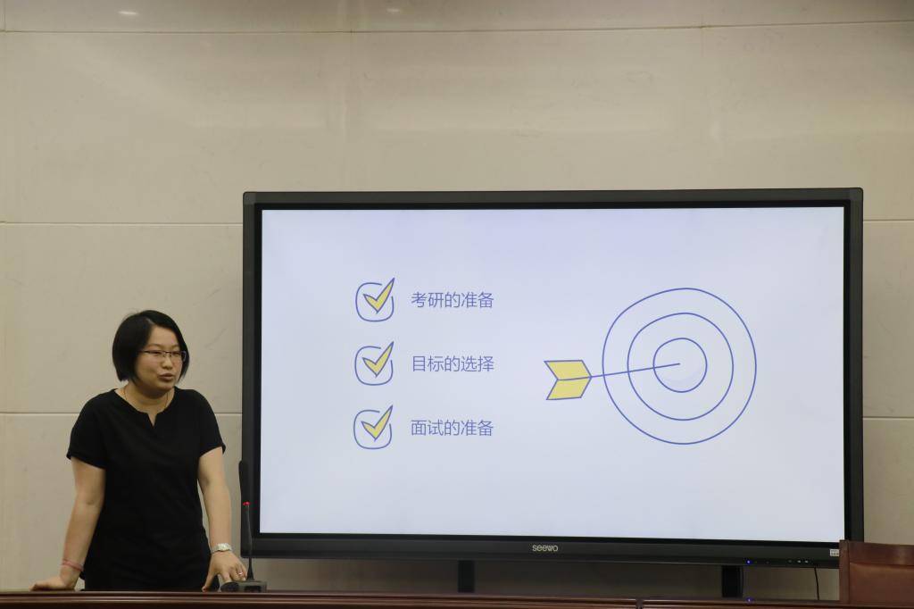 其次就是读研前的准备工作。在目标的选择上,学姐强调最多的就是导师的选择,结合导师的专业方向、专业能力、科研实力三个方面,为学弟学妹提供了很多了解导师的途径和选择导师的标准,强调了一个好的导师对自己研究生之路的重要性。另外就是面试的准备,学姐分享了自己当时面试的经历,劝导我们要好好准备专业知识和提高自己的英语水平。
