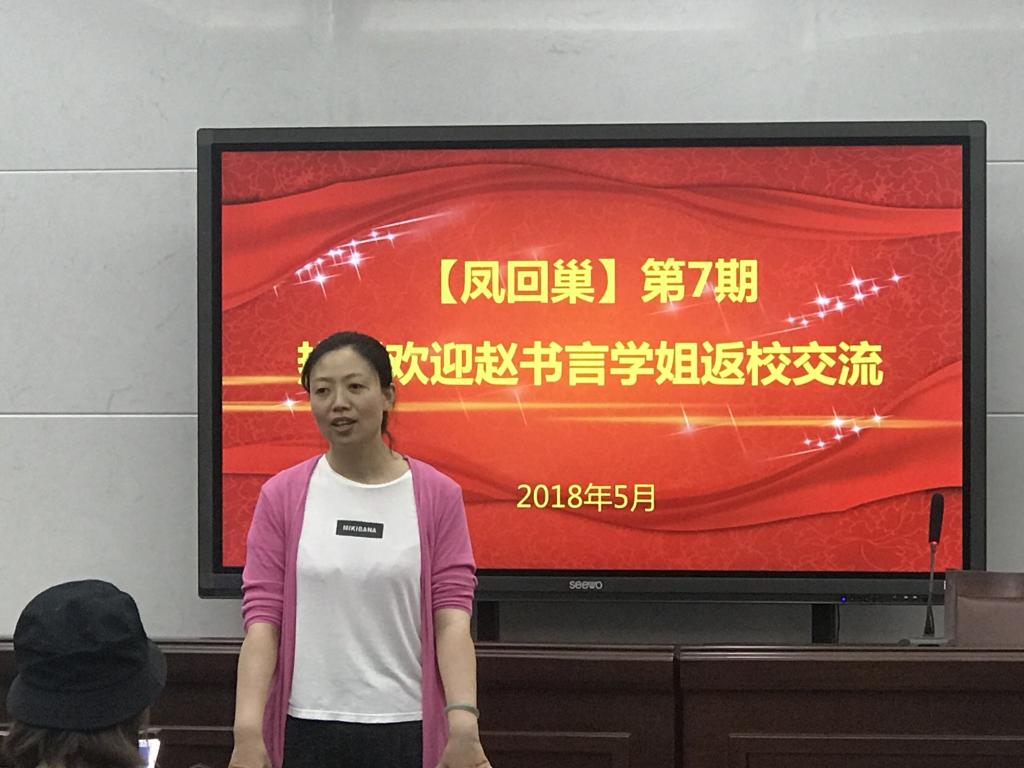 2018年5月19日下午14点到16点,买球体育官网在报告厅举行了“凤回巢”第六期经验交流会。买球体育官网邀请到毕业于应化091班,直博复旦大学的优秀学姐赵书言为主讲人,党委副书记刘照云及2015级、2016级应化专业的学生也参与了本次交流会。