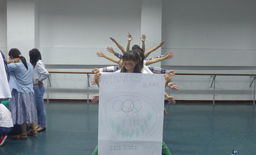 整个活动在刘老师的特色传统项目抓手指中拉开帷幕,这个通过抓住旁边同学的手指,来测试反应能力的游戏让同学们热情高涨。紧接着刘老师打乱了打破了系和班的界限,以10人一队分成不同的队伍,选出队长,副队,队秘,队徽,队歌,以及代表你这个团队的姿势。话音刚落,同学们便立刻热切讨论起来,你想队名,我画队徽,分工协作。有的叫五男五女队,有的叫五湖四海队,有的摆出千手观音的姿势。各个组很有创新精神,想出的组名和口号都让大家眼前一亮。之后的小游戏更加增进了团队之间的默契,例如找特定的物品。有些同学甚至不嫌辛苦从6楼跑到楼下只为采集树叶。