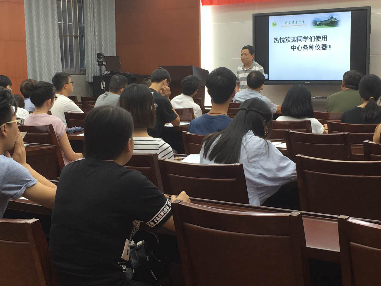 接着进行的是化学系实验室准入培训:实验室安全教育,章维华教授、兰叶青教授、朱映光教授等都强调了实验室安全问题,要求全体研究生在实验室要规范操作,养成良好的安全实验习惯,同时注意提高安全意识。